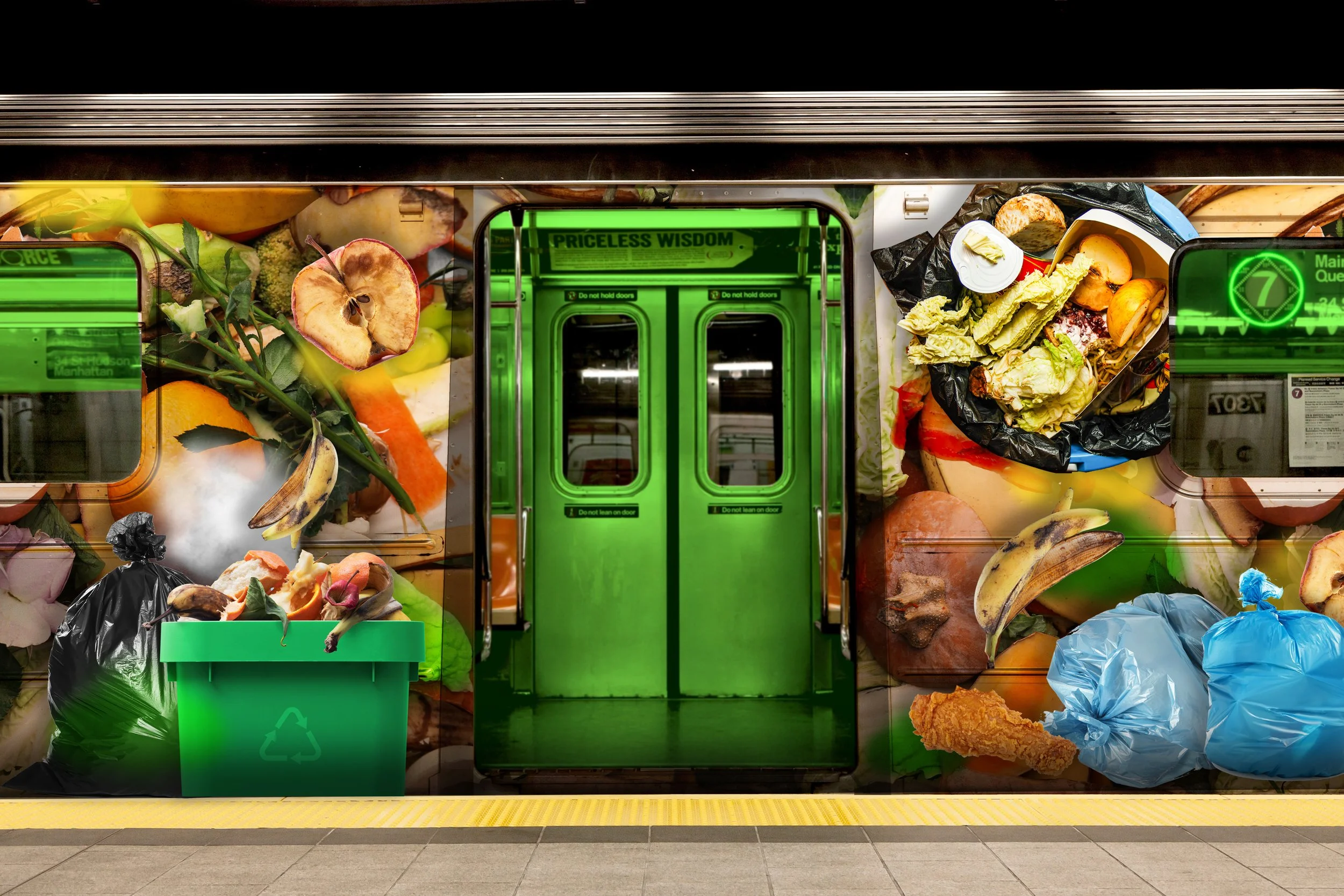 Immersive Brand Experience: As New Yorkers wait at the subway station, a car covered in trash arrives.