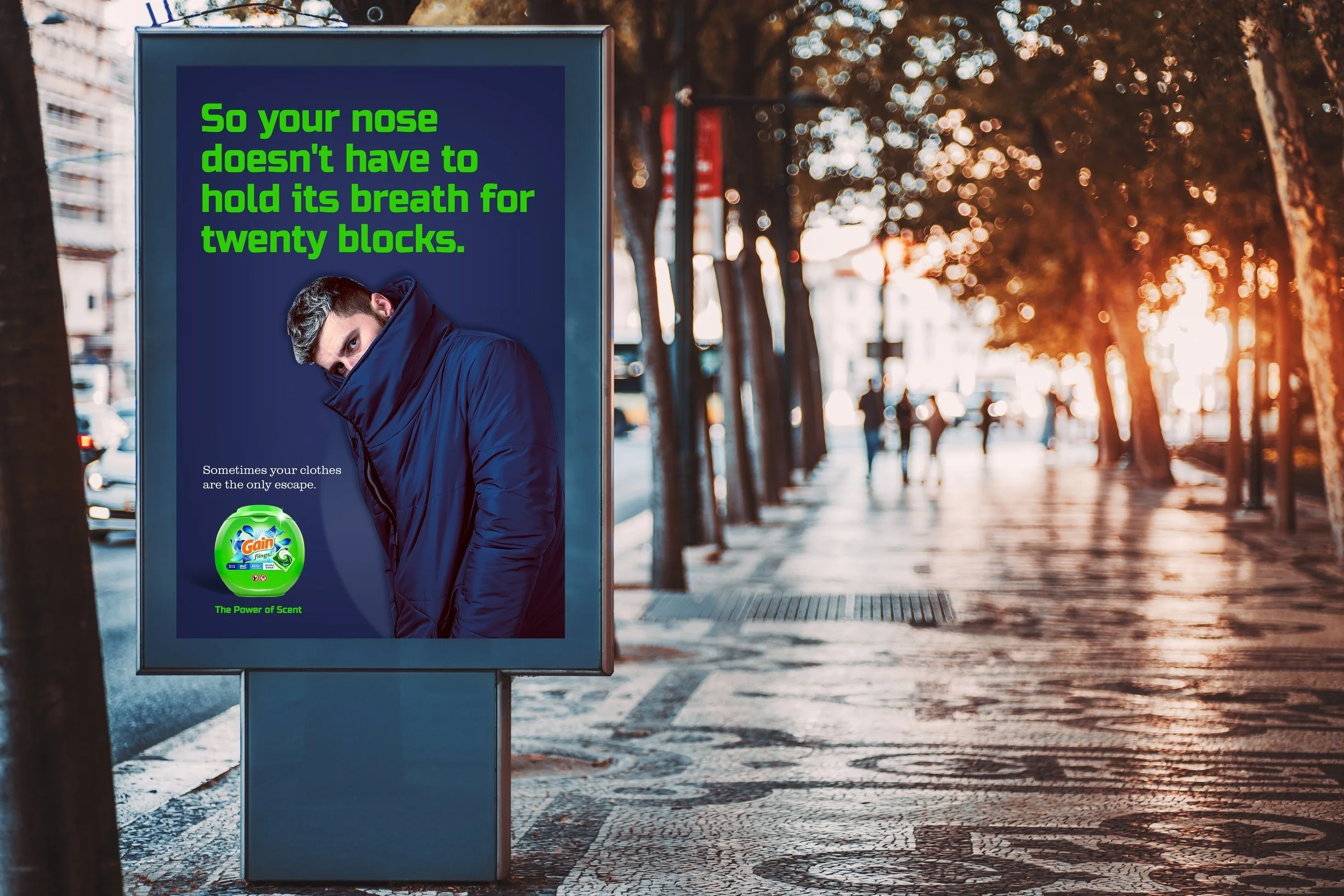 New York City is full of offensive smells that can put one off. Gain’s good scents, on the other hand, are known to uplift mood. Gain takes over New York City and mocks the city’s offensive odors, while offering New Yorkers an escape from it — a dive into their clothes!