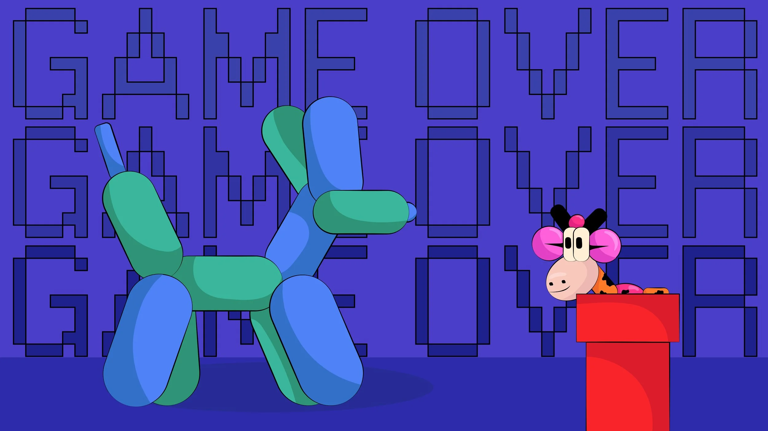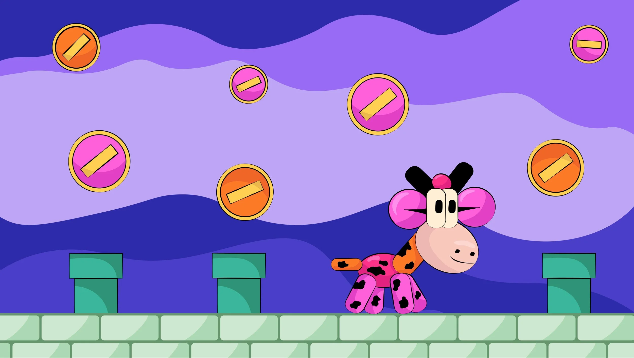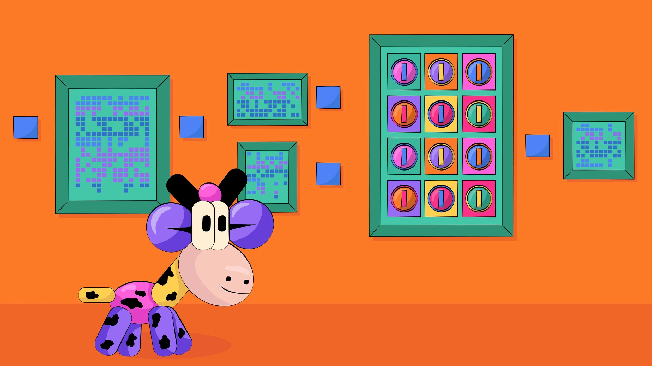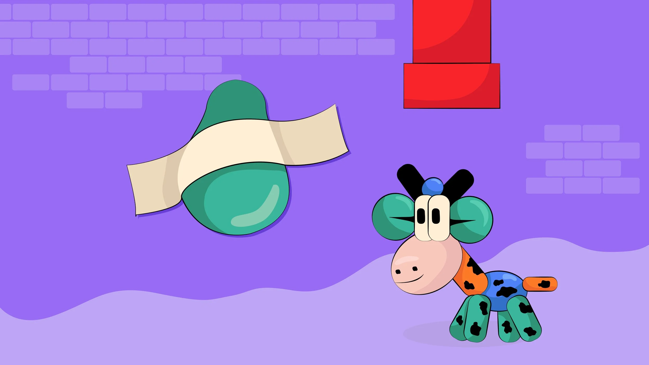 Moorio the Cow visits an Art Museum and plays with artworks inspired by the creations of famous artists. The visual language and movements are inspired by the classic video game, Mario.